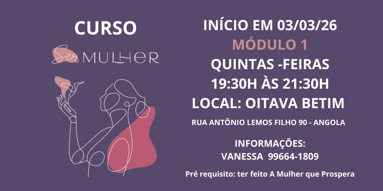 Mulher Única - Turma EXCLUSIVA para OITAVA JOVEM - 18 à 25 anos (SOLTEIRAS) - 4ª Feira - 2026.1 (Facilitadoras: Fabiana, Nayandra)